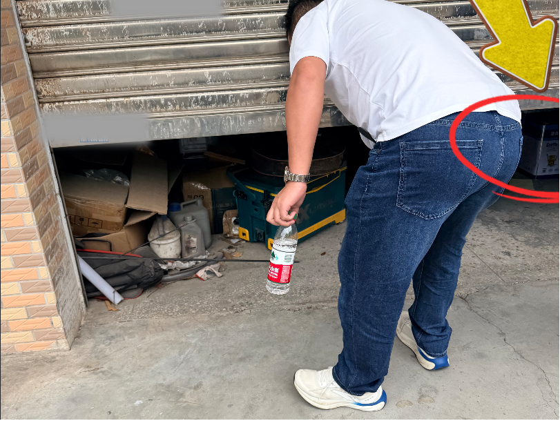 在卷帘门即将关闭的瞬间,网格员迅速抓拍门缝内一角。通过照片放大观察,角落堆放的桶状物品引起其注意。网格员当即运用培训中所学的“AI+巡查”技战法,将图片上传AI识别,AI迅速反馈“疑似危险化学品”的预警信息。考虑到该场所位于居民楼一层,楼上即为出租屋,人口稠密,一旦发生泄漏或火灾后果不堪设想,网格员果断向镇网格管理中心及应急管理分局“吹哨”报告。