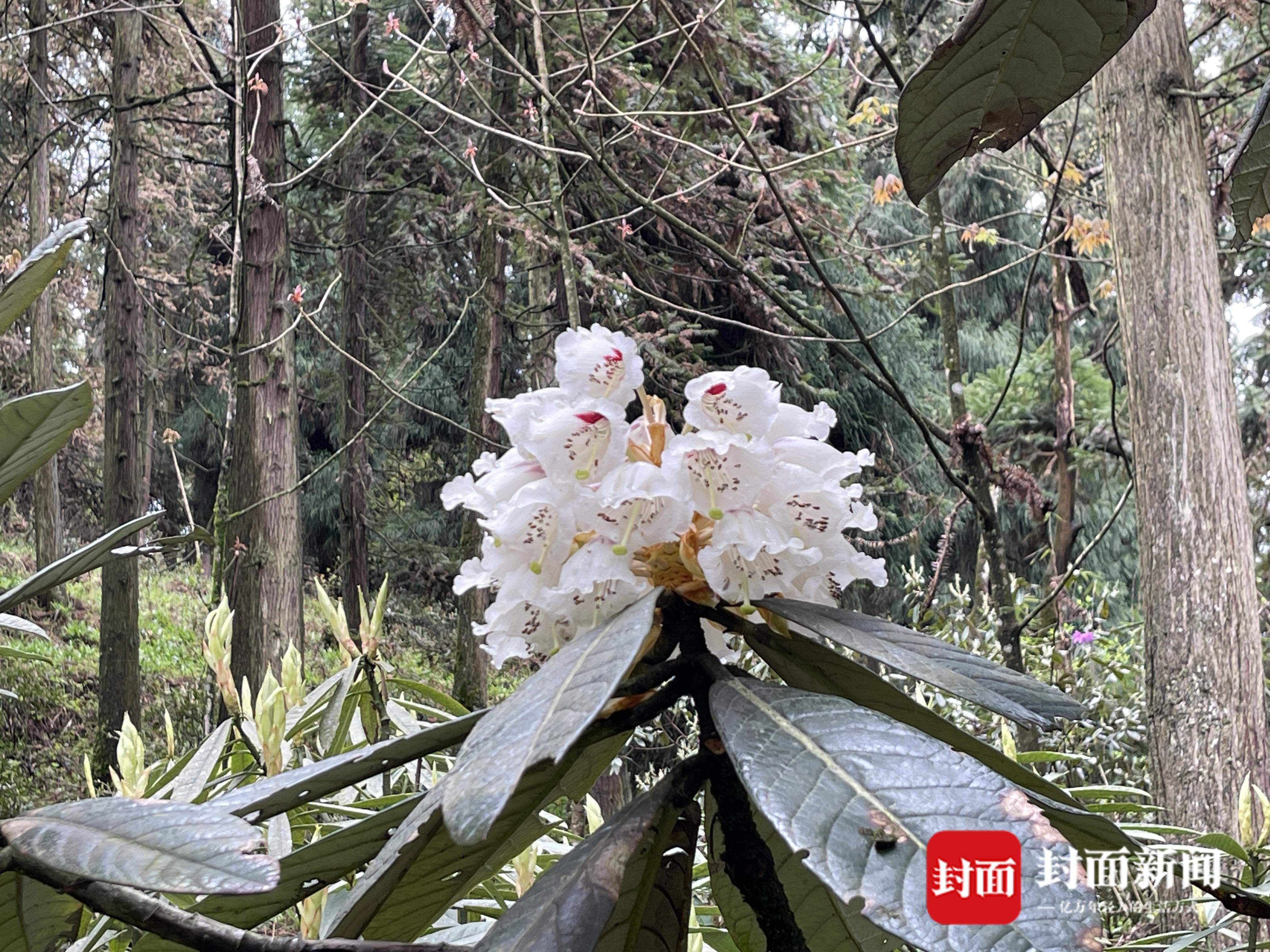 许多人都是第一次亲眼见到凸尖杜鹃。王飞、邵慧敏这些研究人员,在图片上倒是见过不少,不过,真正的花朵他们都是第一次见。当天,还有一群来自云南、南京、成都等地的十多名植物爱好者、学者组成的观花团来到保育园观花,他们幸运地看到了盛放的凸尖杜鹃。冯女士是“追花人”中的一员,今年3月初,她特意前往云南观花,那里的凸尖杜鹃还是花苞,原本计划在花期再次前往,现在不需要了。“今天就看到了!”