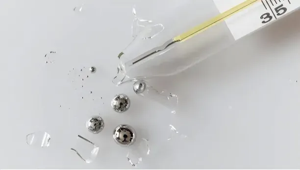 而我国环境空气质量标准规定,汞蒸气浓度的安全限值为50ng/m³,所以破碎体温计洒落的汞一定要认真处理。但也不必惊慌,如果能及时收集散落汞珠,加上一定时间的开窗通风,是不会对人体健康造成影响的。